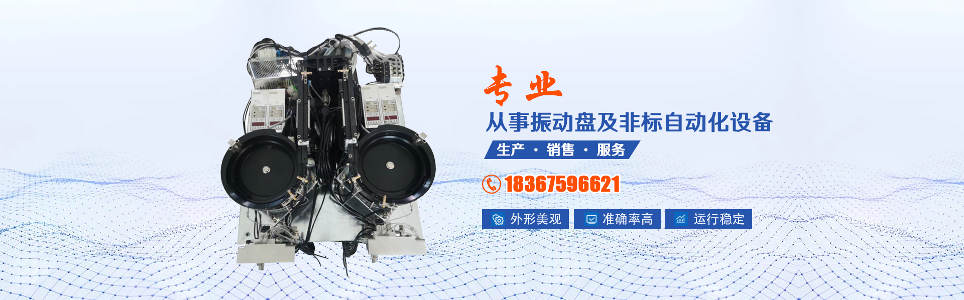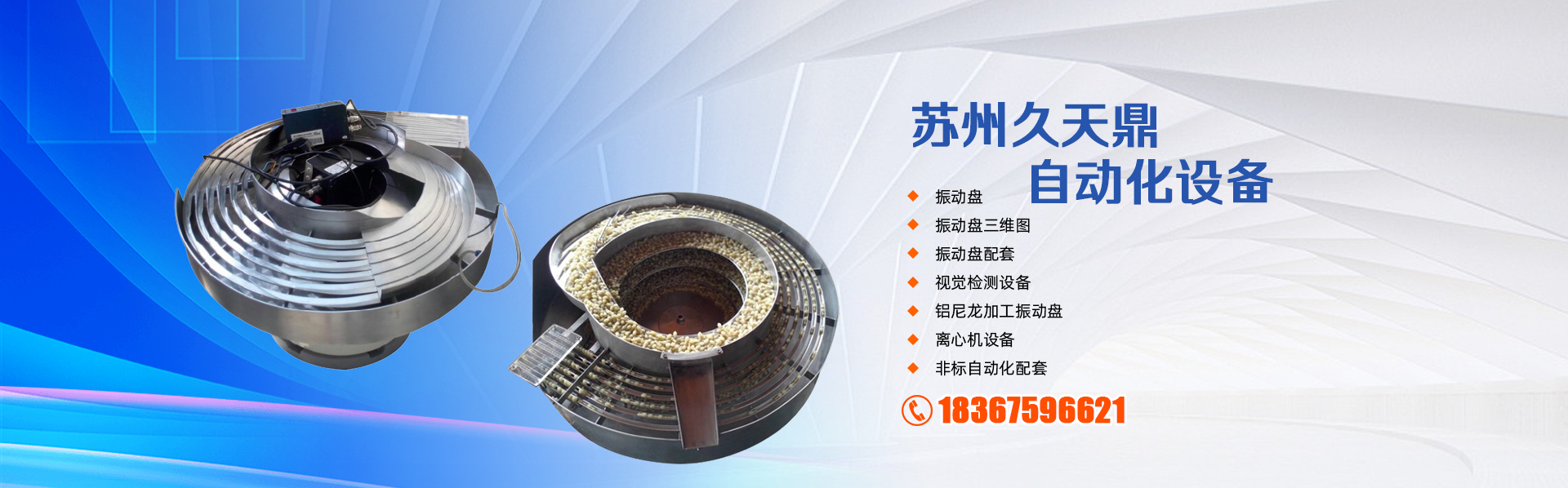 苏州久天鼎自动化设备有限公司是一家专业从事振动盘及非标自动化设备的生产、销售及服务于一体的厂家;产品本着"言信出品,客户满意"的宗旨致力于产品的研发、创新,不断的提升产品的品质,降低成本,为客户提供优良产品及服务。主要产品包括:自动上料振动盘、自动送料仓、直线送料器、电控、振动平台、垂直振动器、自动计数包装系统等系列产品,非标、自动化、半自动化设备改装与设计。同时我们还承揽进口和国产振动盘的维修业务。 振动盘及自动化设备广泛应用于轻工机械、标准件、接插件、轴承、含油轴承、喷嘴、钮扣、拉链、软木、制药业、五金及电器、塑胶橡胶、连接器、电池、化妆品及食品包装机械、半导体及检测、电子精密型产品等各个行业自动化设备的应用。为了满足客户的需求,进一步提高产品的稳定性,并可根据客户的要求为客户设计制作各种非标准自动化设备和现有设备的升级改造及各种连接器装配机等设备。 科技、创新、服务、超越"是我们的核心价值观,它像大海中的灯塔一样指引着我们前进和努力的方向。在未来的道路上,我们有信心,更有能力成为您的信奈合作伙伴,共同取得事业的辉煌!